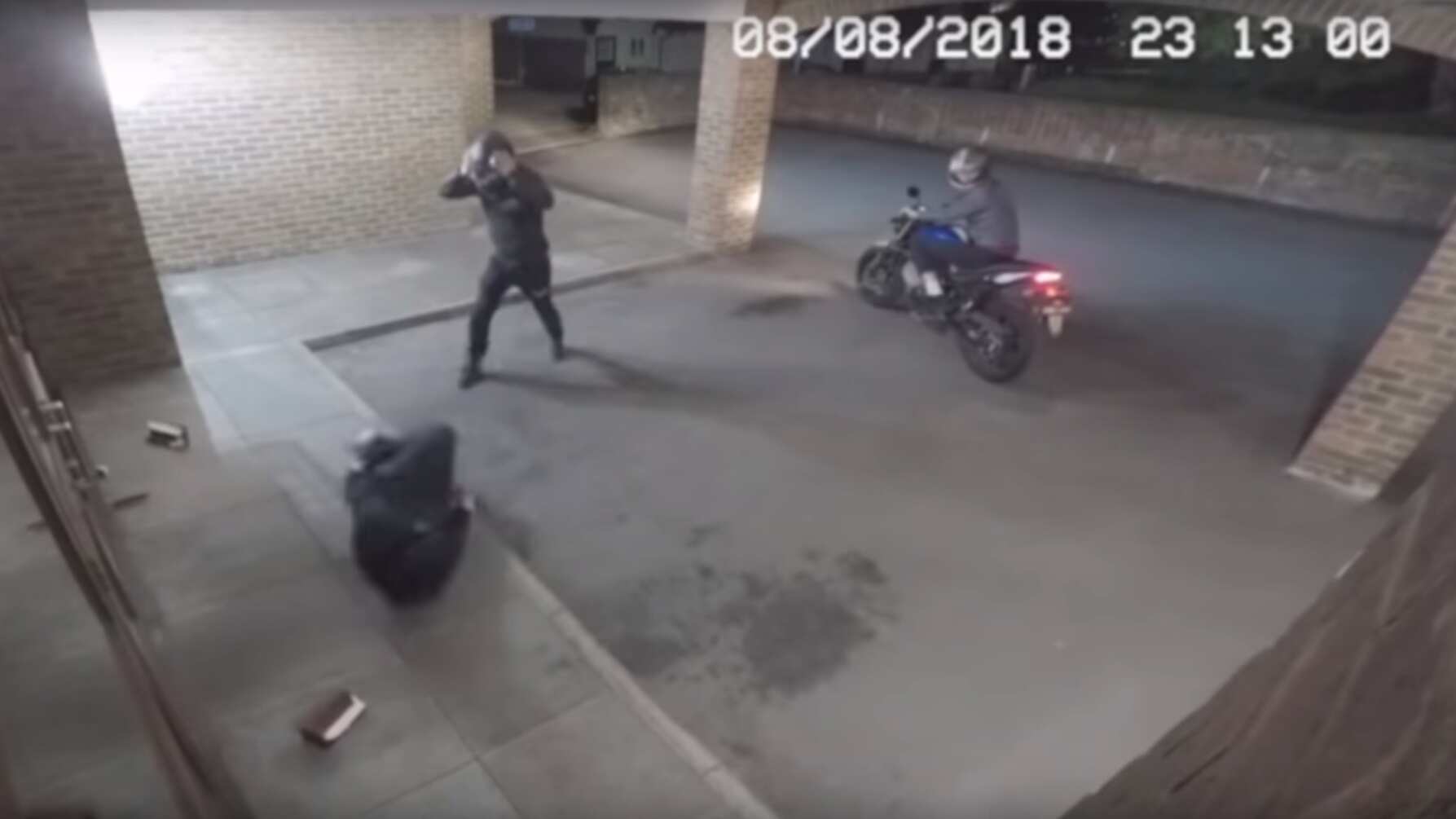Cámaras de seguridad instaladas en las afueras de una tienda en Londres captaron el curioso momento en el que tres hombres intentan llevar a cabo un atraco al local.
