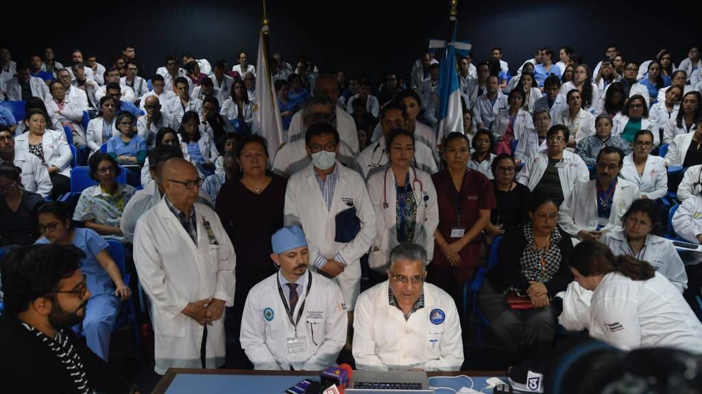 En una conferencia de prensa ofrecida este jueves en el hospital Roosevelt, la Asamblea de los Profesionales de Salud dio a conocer que mantendrá las medidas de hecho aplicadas para exigir a las autoridades que se les otorguen mejoras laborales.