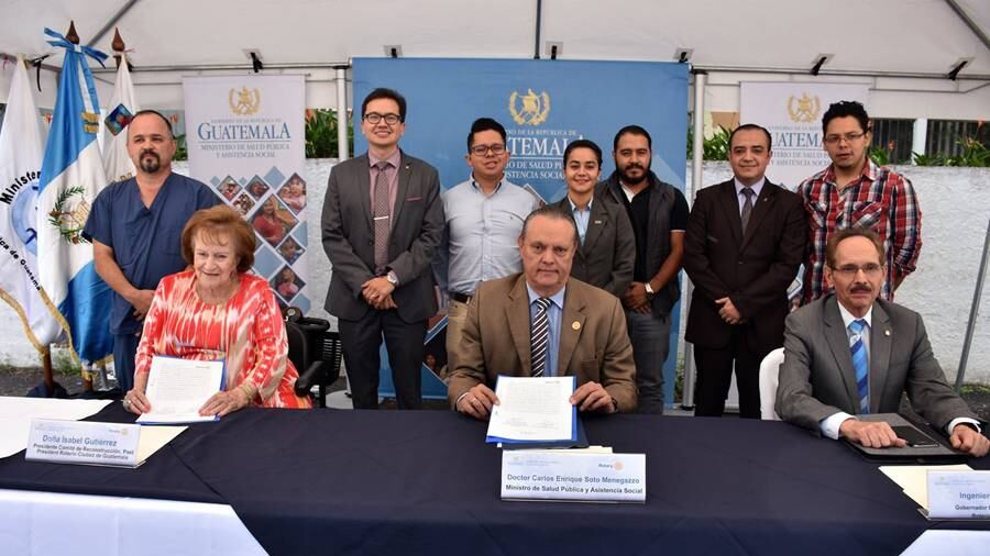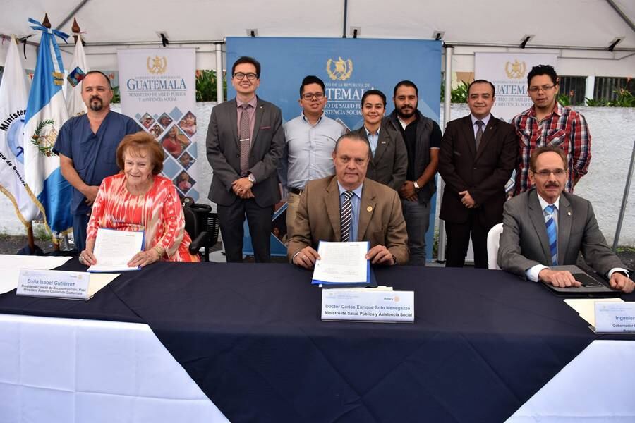 Los encargados de firmar el acuerdo fueron doña Isabel Gutiérrez y Franky Viau, gobernador electo Past Presidente de Rotario Guatemala Sur, así como el titular del MSPAS, Carlos Soto.
