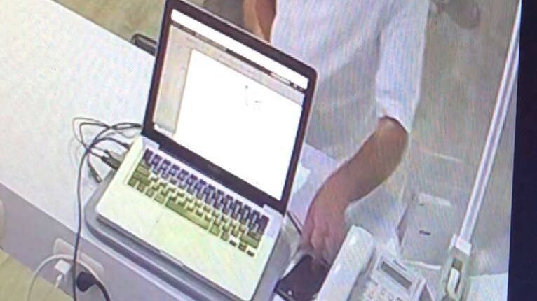 En el video se puede ver al individuo que está en la tienda como si se tratara de un cliente normal, pero en realidad lo que está haciendo es desviar la atención de la persona que lo atiende para lograr robar el aparato.