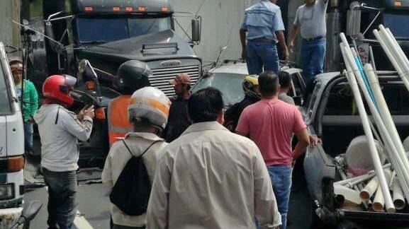 El tráiler que originó el incidente siguió al conductor de la moto, pero no pudo frenar al llegar al lugar donde había otros vehículos, por lo cual impacta en contra de ellos.