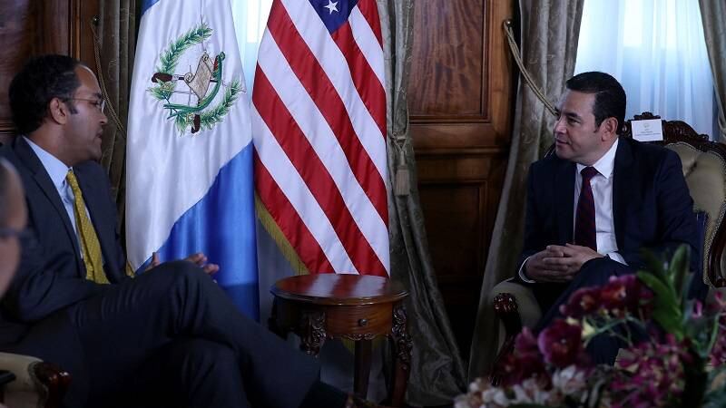 El presidente Jimmy Morales se reunió el sábado en el Palacio Nacional de la Cultura con el congresista republicano Will Hurd.