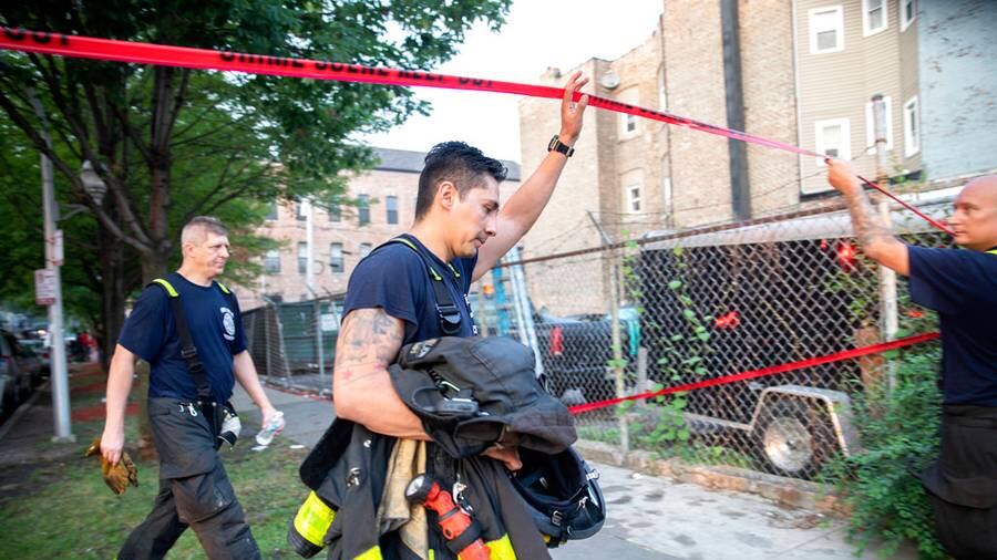 En imágenes de un video se puede ver humo saliendo de las ventanas de un edificio de tres pisos con fachada de piedra. Agentes de policía ayudaron a empujar una camilla hacia una ambulancia, mientras un paramédico realizaba reanimación cardiopulmonar. Una mujer lloraba en la calle y una persona intentaba consolarla.