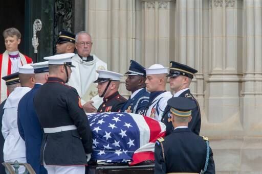 Los honores continúan en una ceremonia en la catedral, televisada a nivel nacional, donde asisten decenas de sus colegas del Congreso, Bill y Hillary Clinton, los ex vicepresidentes Al Gore y Dick Cheney, y los exsecretarios de Estado Madeline Albright, John Kerry y Henry Kissinger.