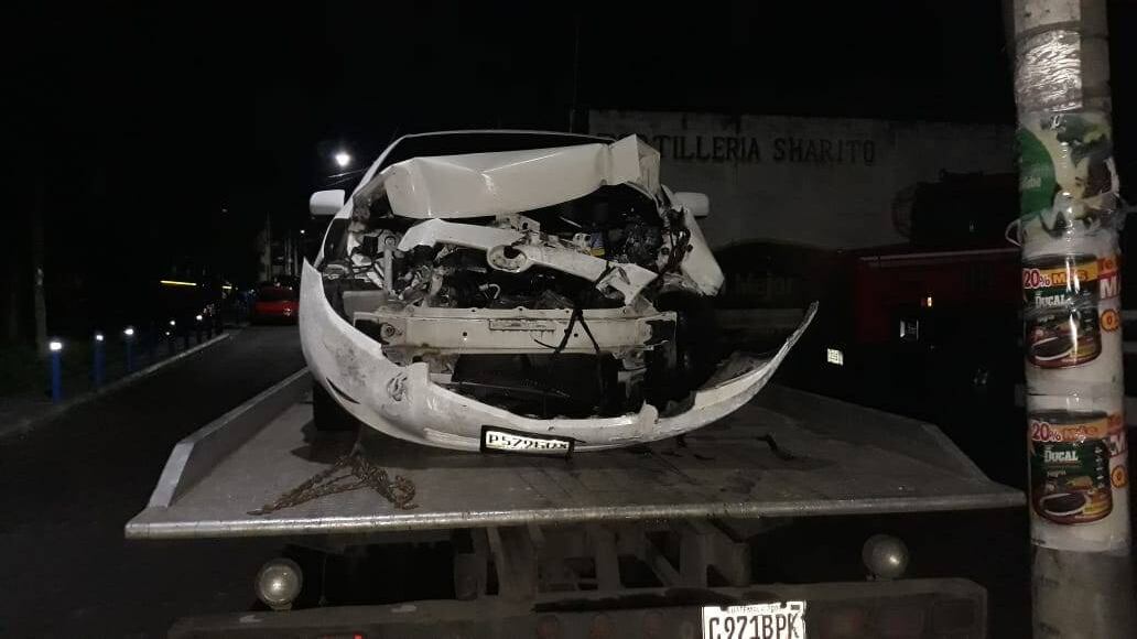 Dalia Santos, portavoz de la Policía Municipal de Tránsito (PMT) de Villa Nueva, explicó que en ese lugar colisionaron un automóvil particular y un camión, en los carriles que van hacia el sur. Además, un poste del alumbrado público quedó derribado.