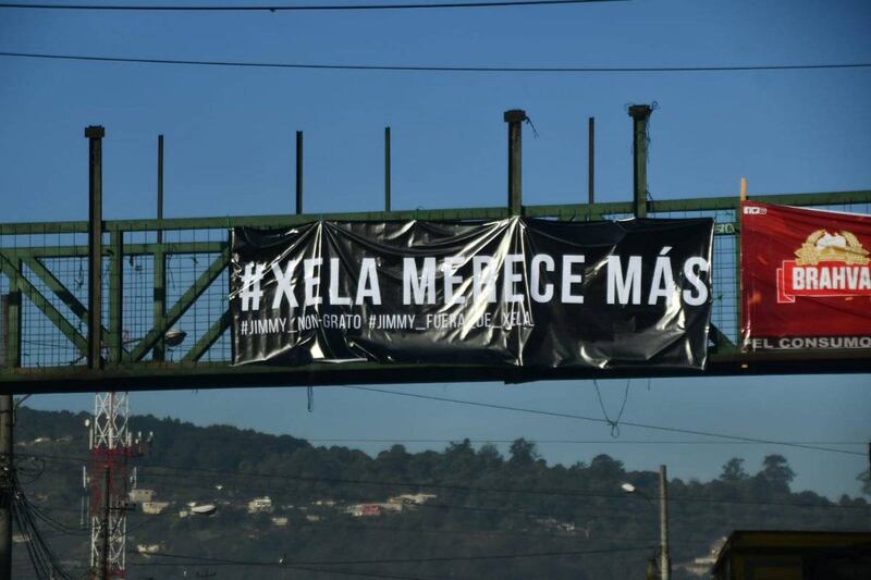 “Xela Merece Más”, “Jimmy non grato”, Jimmy fuera de Xela”, son algunos de los textos que se pueden observar hoy en pasarelas y diferentes puntos.