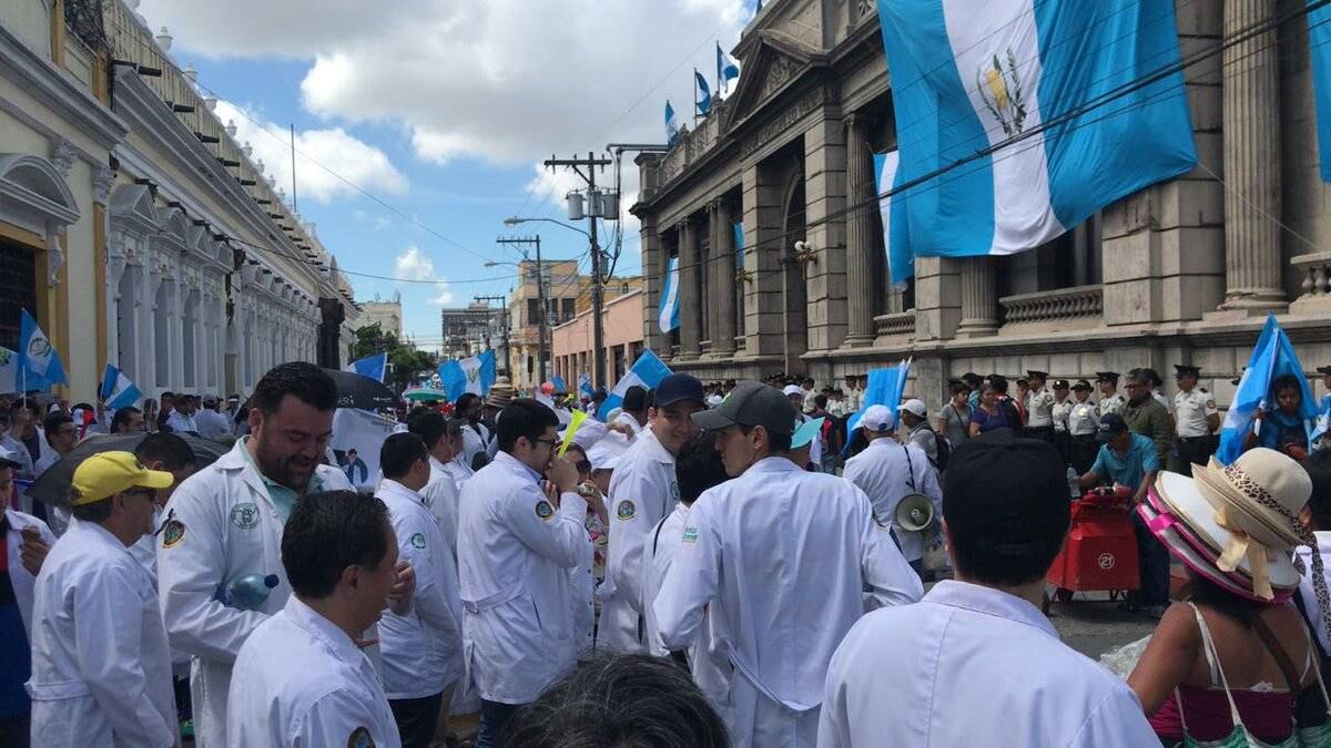 La denominada “marcha de Batas Blancas” salió a las 9:00 horas del Paraninfo Universitario, en la 2ª avenida y 13 calle de la zona 1, con dirección al Congreso de la República. Además, se tiene previsto que se dirija después al Palacio Nacional y Casa Presidencial.