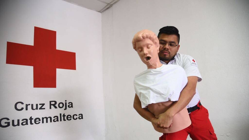 Lo importante al notar una obstrucción en la garganta es poder actuar con los procedimientos de primeros auxilios adecuados con compresiones en el abdomen, como detalla a continuación Marco Álvarez, instructor en el Instituto de Formación Integral de la Cruz Roja Guatemalteca.
