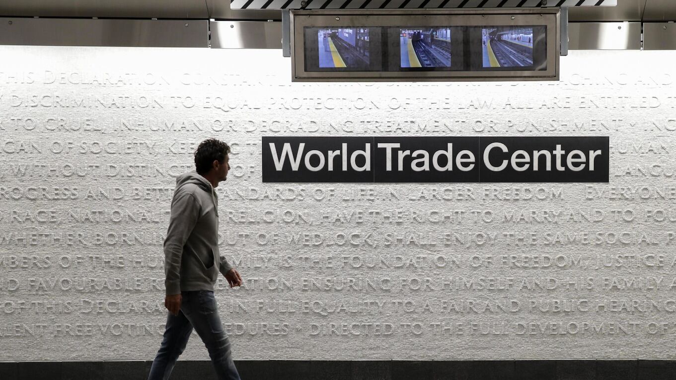 El primero de ellos, ubicado en la estación de trenes de Cortlandt Street 1, en Nueva York, presenta inscripciones en una pared renovada, casi dos décadas después de que el lugar quedara enterrado entre los escombros después de los atentados terroristas.