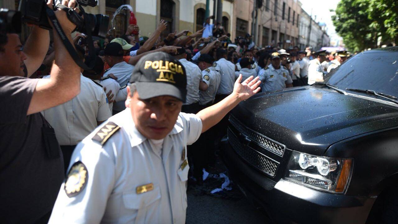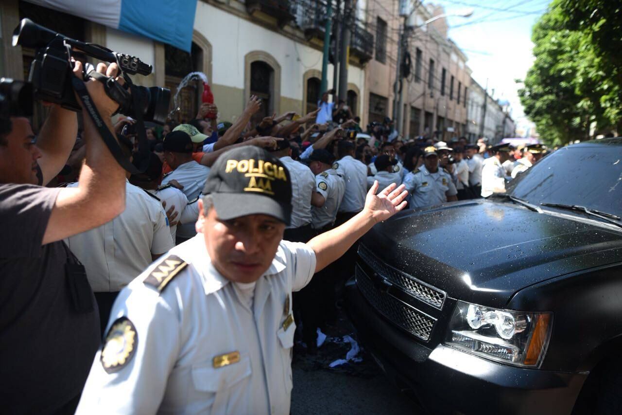 Es lamentable que un pequeño grupo de personas violentas se presten a realizar un bloqueo al trabajo de miles de guatemaltecos y del Organismo Legislativo, sirviendo de comparsa a los intereses de quienes buscan desestabilizar el país. Algunos de quienes manifiestan violentamente, incluso han agredido a trabajadores del Legislativo, diputados y a un ministro de Estado", indicó.