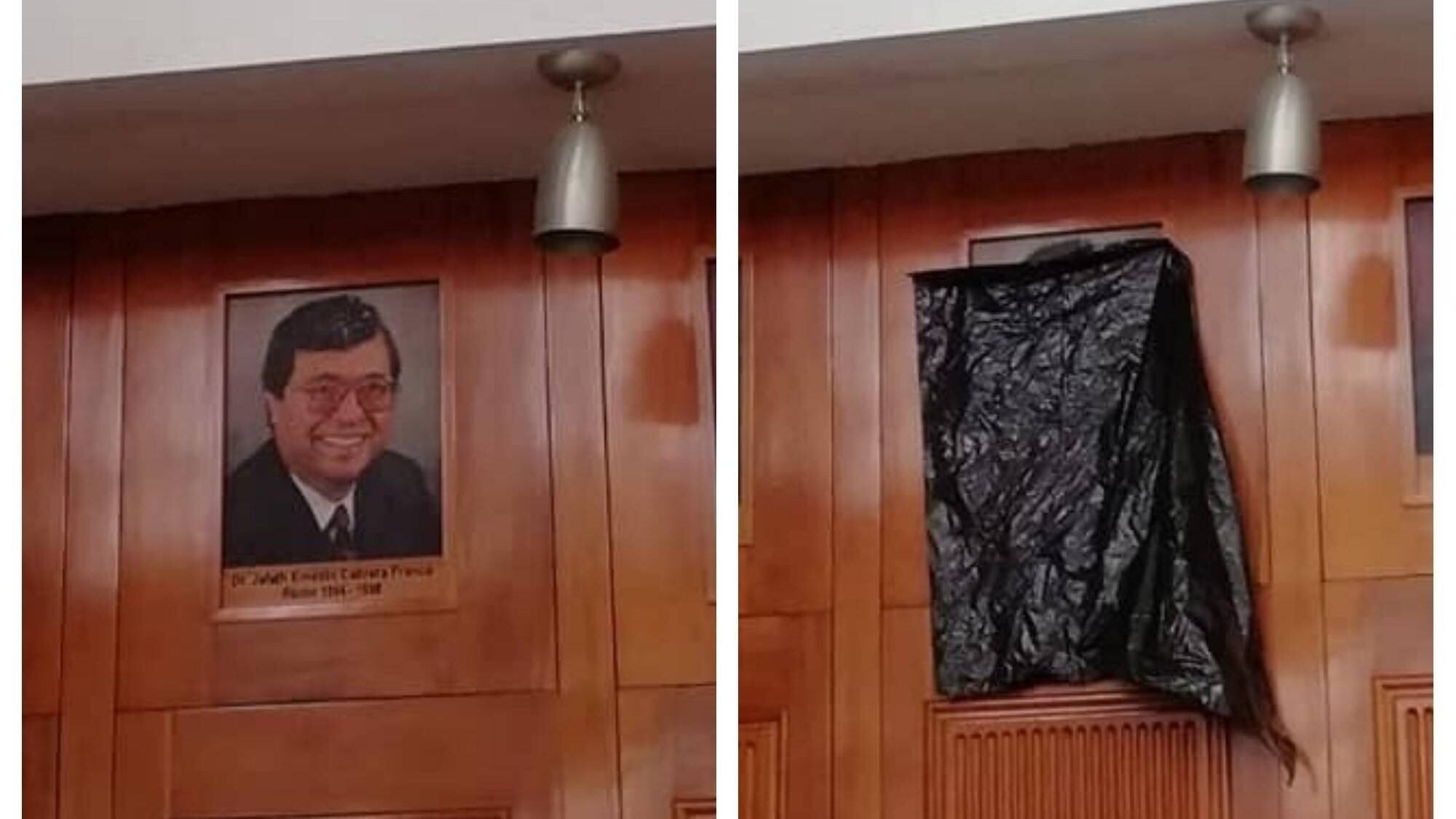 Sumado a la medida antes mencionada, el personal de la USAC también procedió a cubrir el retrato del vicepresidente Cabrera con un trozo de plástico negro, el cual se ubica en el salón del CSU.