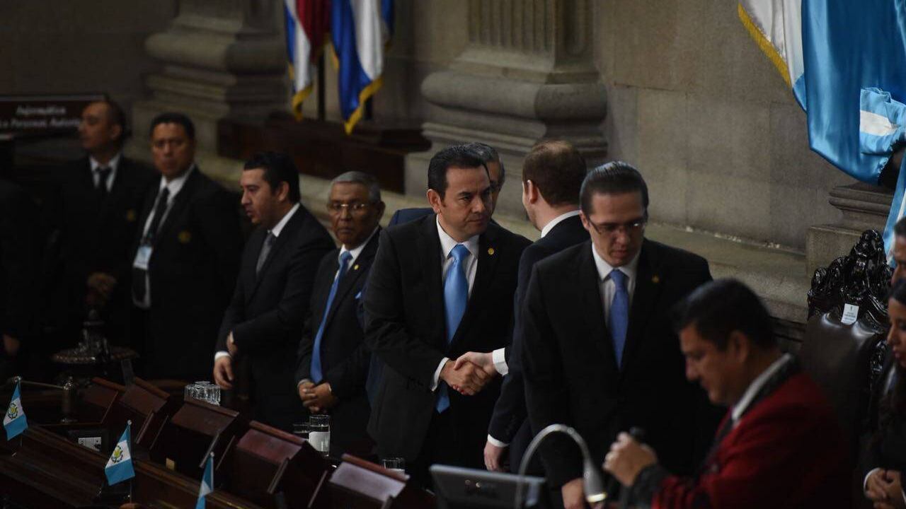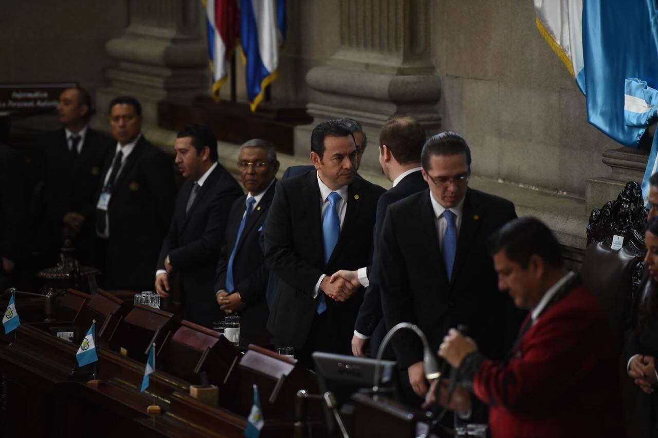 Al culminar los actos protocolarios y al sonido de la Granadera, Jimmy Morales comenzó a realizar su egreso, momento que aprovechó el diputado del Partido de Avanzada Nacional (PAN), Fernando Linares Beltranena, para obsequiarle una calcomanía con la leyenda "Yo amo la Constitución" y con la firma de la Asociación de Constituyentes, A de C.