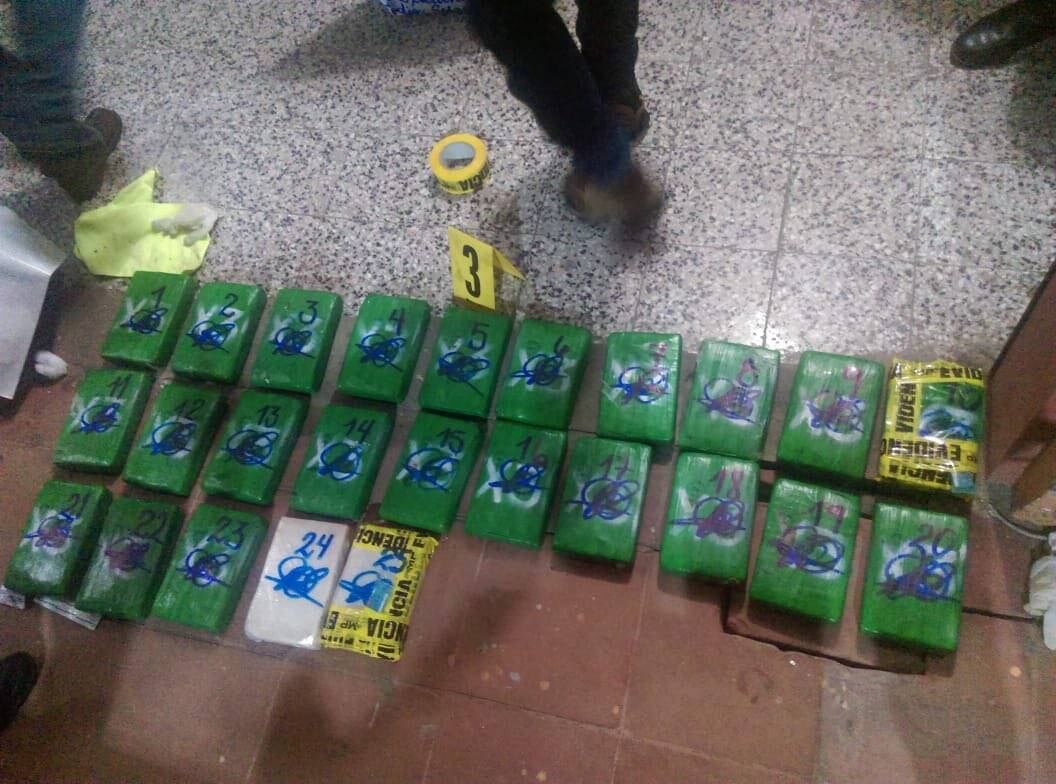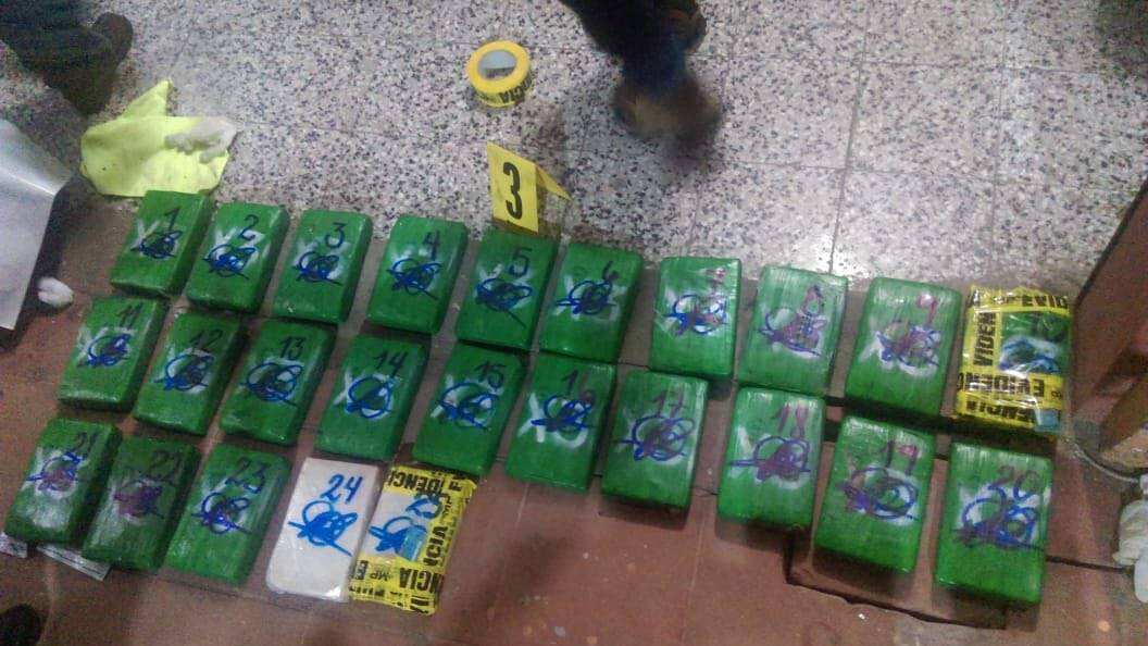 Efectivos antinarcóticos de la Policía Nacional Civil (PNC) incautaron 46 paquetes con cocaína que iban ocultos en un compartimento dentro de un pick-up.