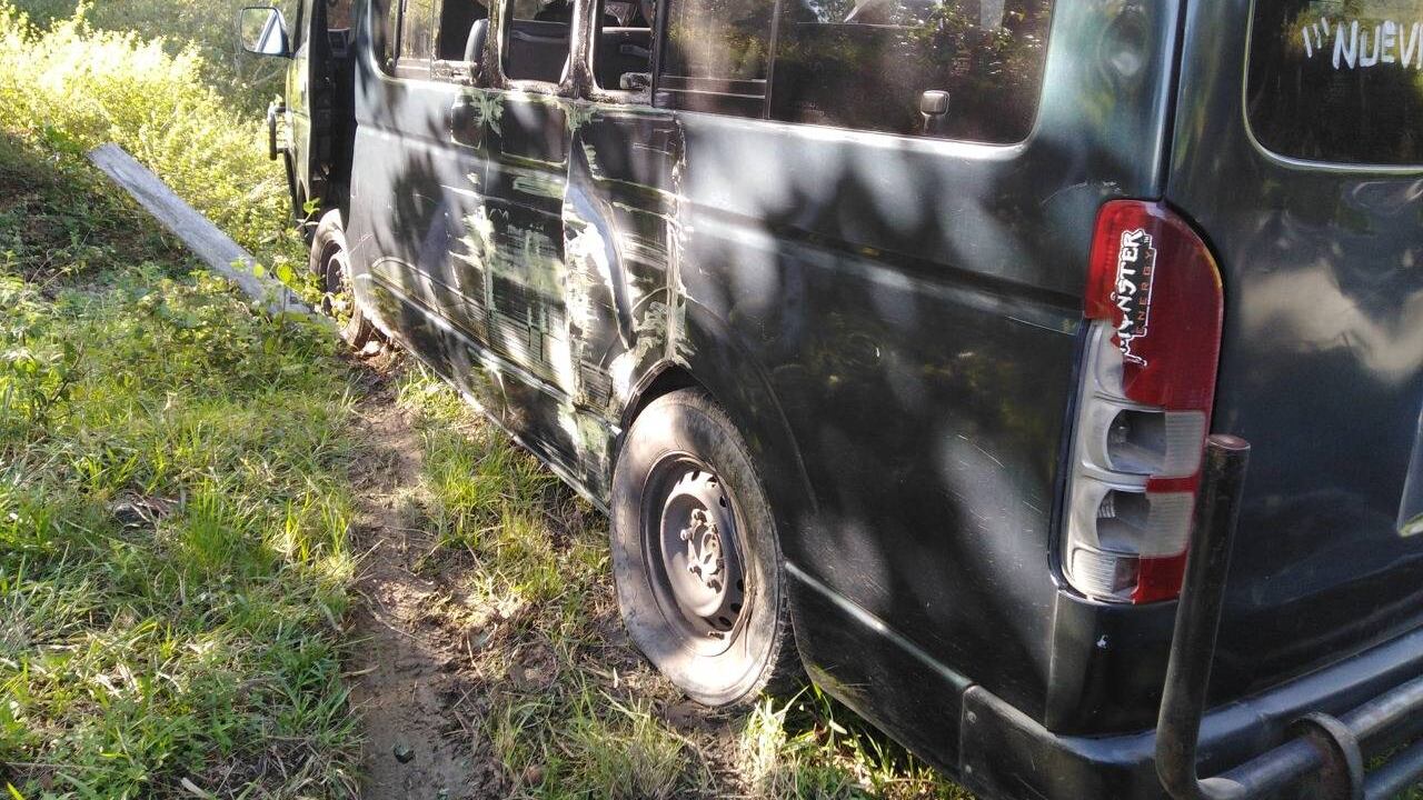 Según pasajeros, el conductor del microbús tuvo problemas en el sistema de frenos y al girar en la vuelta “El Tecolote” perdió el control y se encunetó.