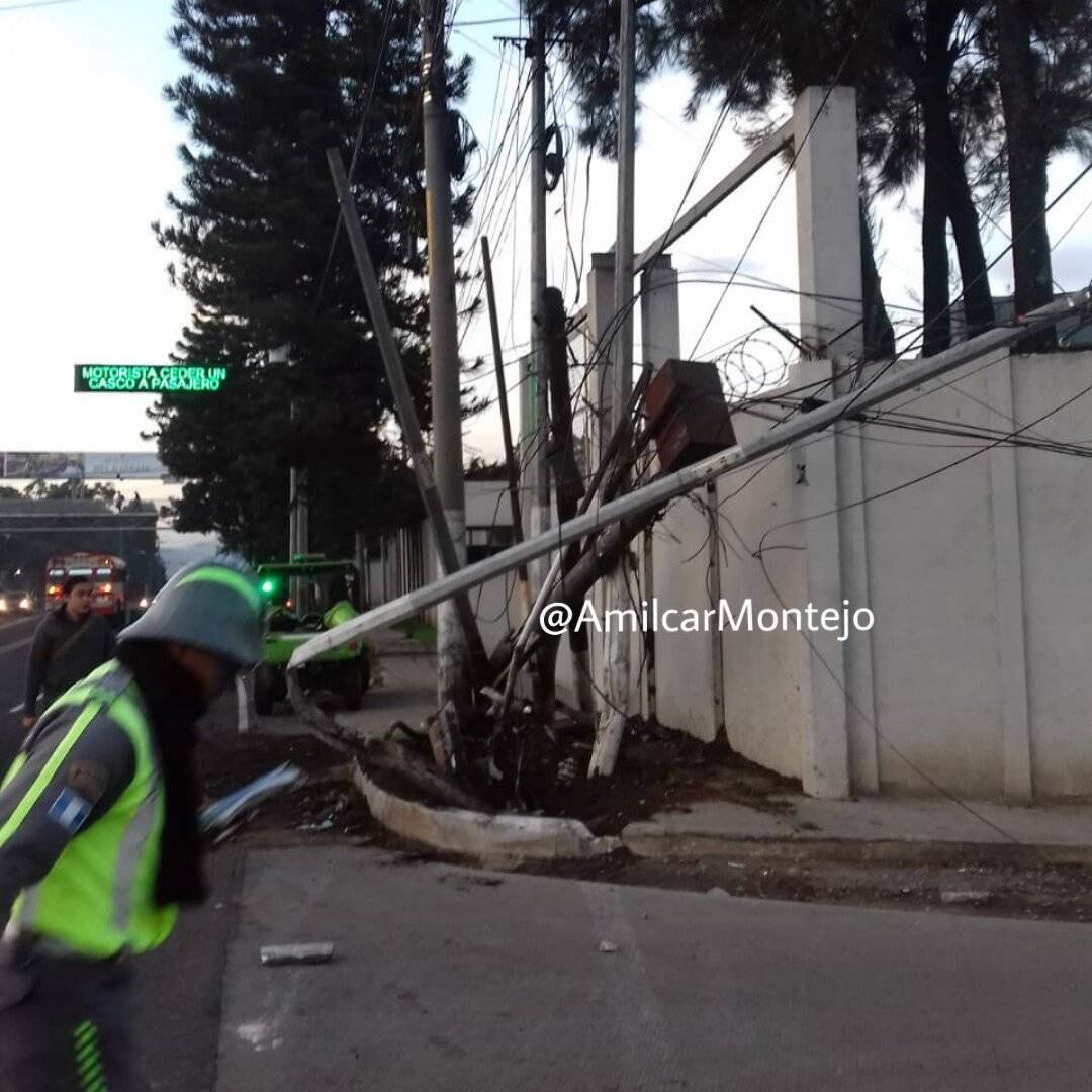 Amílcar Montejo, intendente de la Policía Municipal de Tránsito (PMT) de la Ciudad de Guatemala, señaló que cinco postes de aluminio y uno de concreto quedaron destruidos luego de que se registrara una colisión, por lo cual se coordinó el retiro de los mismos