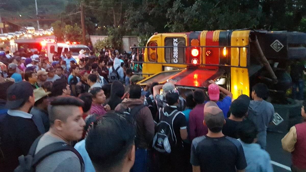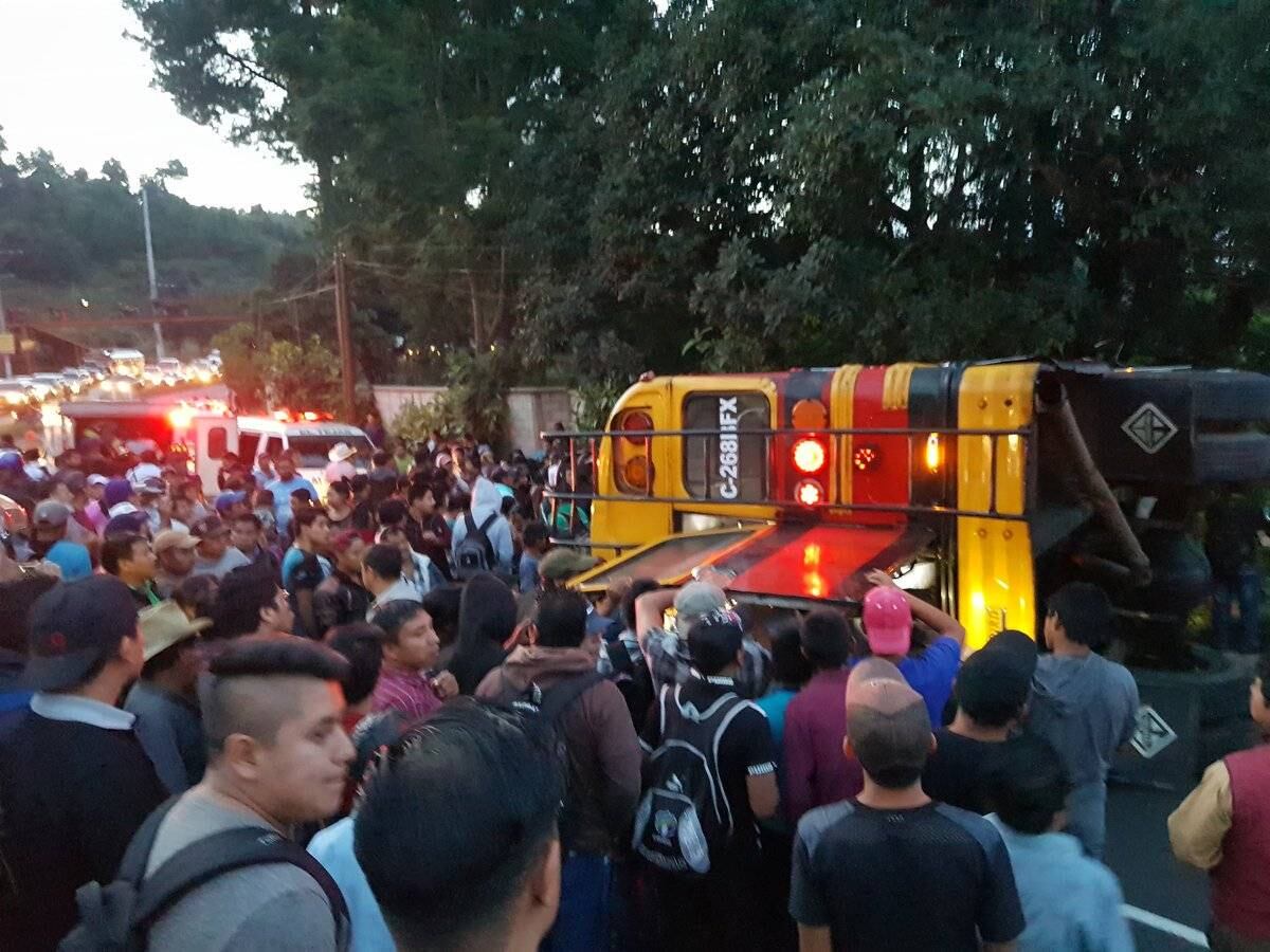 En jurisdicción de Santa María Cauqué, Santiago Sacatepéquez, se registró el accidente de un bus que dejó al menos 35 personas heridas, quienes fueron llevadas por los cuerpos de socorro a los hospitales de Chimaltenango y Sacatepéquez.