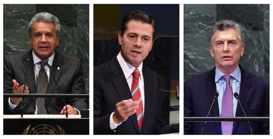 Posteriormente, Enrique Peña Nieto, quien este año pronunció su último discurso como presidente de México, externó su rechazo a las tendencias como el nacionalismo excluyente, las prácticas comerciales proteccionistas y las políticas de exclusión.