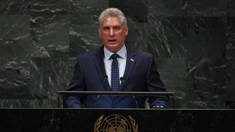 Cuando se cumplen exactamente 58 años de la primera intervención en ese mismo foro de Fidel Castro, padre de la revolución cubana de 1959, Díaz-Canel aseguró que Cuba avanza para perfeccionar su sistema económico y social.