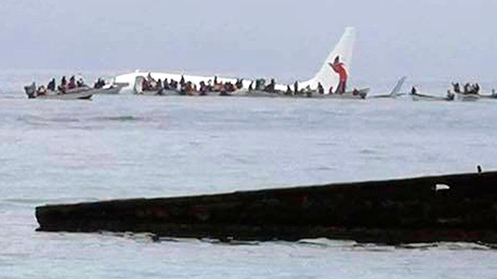 Los 47 pasajeros y miembros de la tripulación sobrevivieron luego de que un avión aterrizó de emergencia en una laguna del Pacífico el viernes.