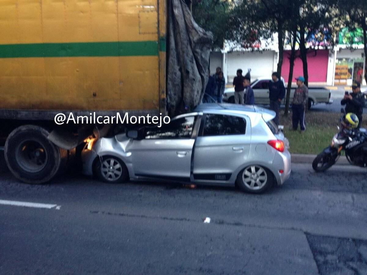 Amílcar Montejo, intendente de la Policía Municipal de Tránsito (PMT) de la Ciudad de Guatemala, informó que un camión y un vehículo colisionaron en el bulevar Vista Hermosa y 18 avenida de la zona 5, lo cual afecta el paso con sentido hacia el oriente.