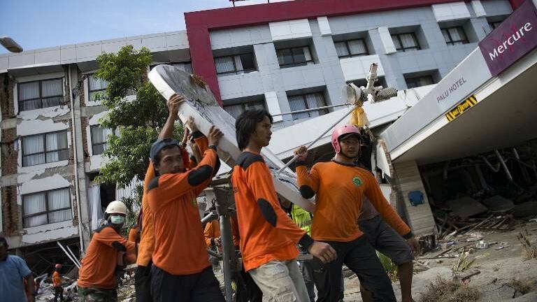 Philip Besson, miembro de la organización francesa Pompiers de l'urgence, dijo que los sensores de alta tecnología del equipo "detectaron la presencia de una víctima" entre los escombros del hotel Mercure, en Palu, pero no pudo confirmar si la persona estaba consciente.