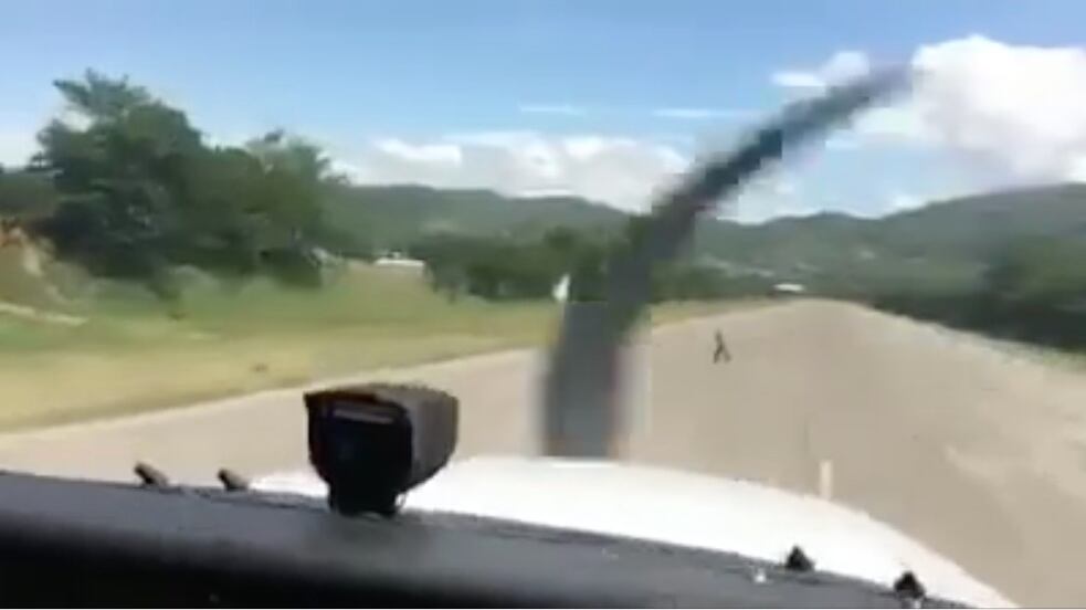 En las imágenes se observa el proceso de aterrizaje que realiza el piloto y al momento de ver la pista se ve al hombre pasando de manera temeraria.