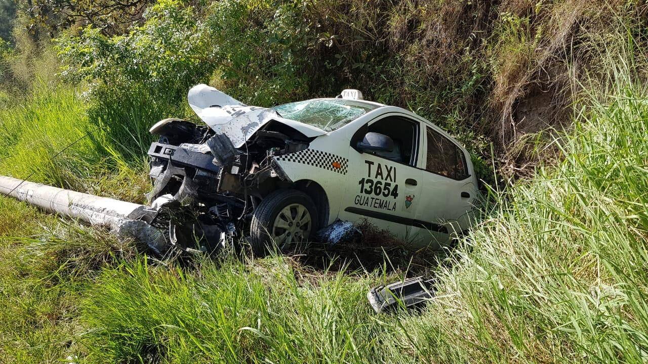 El piloto de un taxi en horas de la madrugada perdió el control en el bulevar sur de San Cristóbal, en la zona 8 de Mixco.