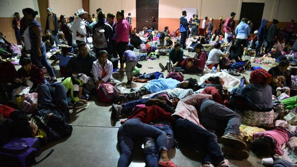 Pasaron la noche del lunes en el interior del colegio San Benito, en Esquipulas. Aunque no todos pudieron ingresar por ser alto el número de personas, durmieron bajo techo los niños, mujeres y personas mayores.
