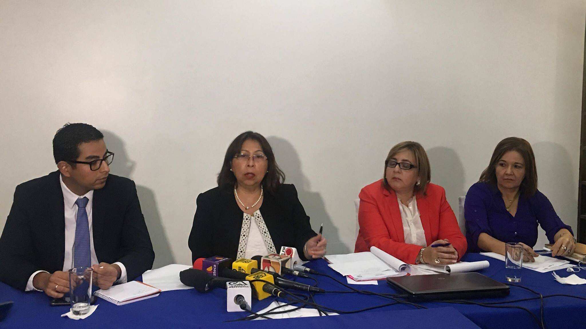 En la conferencia de prensa participaron Mayra Véliz, exsecretaria general del MP; Rootman Pérez, exsecretario de Política Criminal; y Ana Elena Guzmán, ex subsecretaria del ente investigador.
