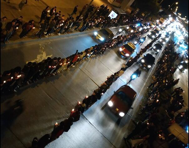 Incluso, portaron veladoras encendidas y se colocaron en fila en la división de cada carril de la avenida.
