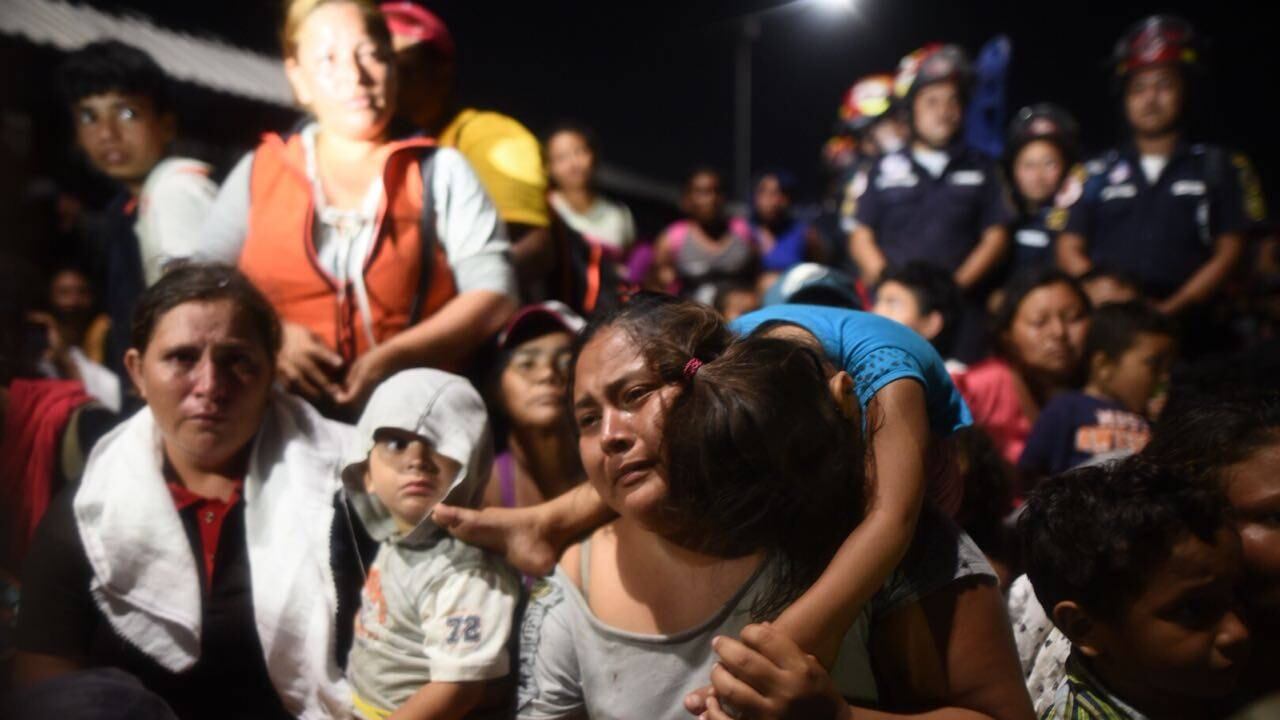 Al mediodía lograron pasar la primer reja del puente Rodolfo Robles, sobre el río Suchiate en Tecún Umán. Pero metros más adelante, fueron detenidos por las autoridades mexicanas para la debida identificación de cada uno.