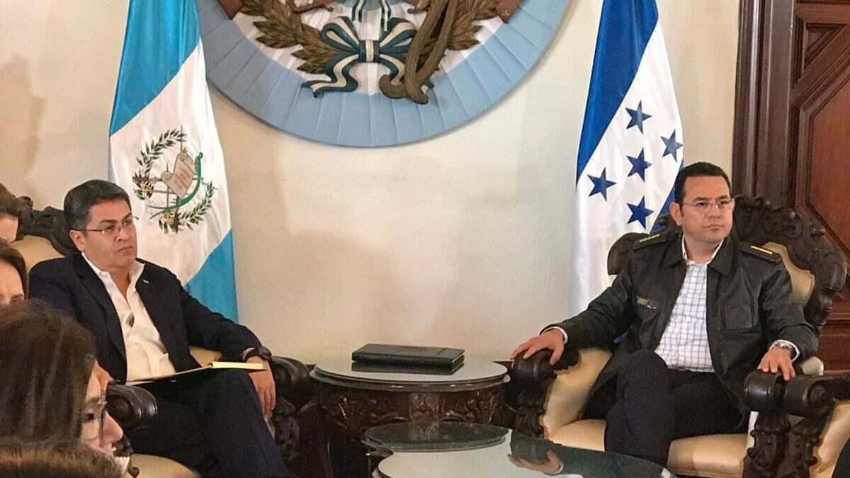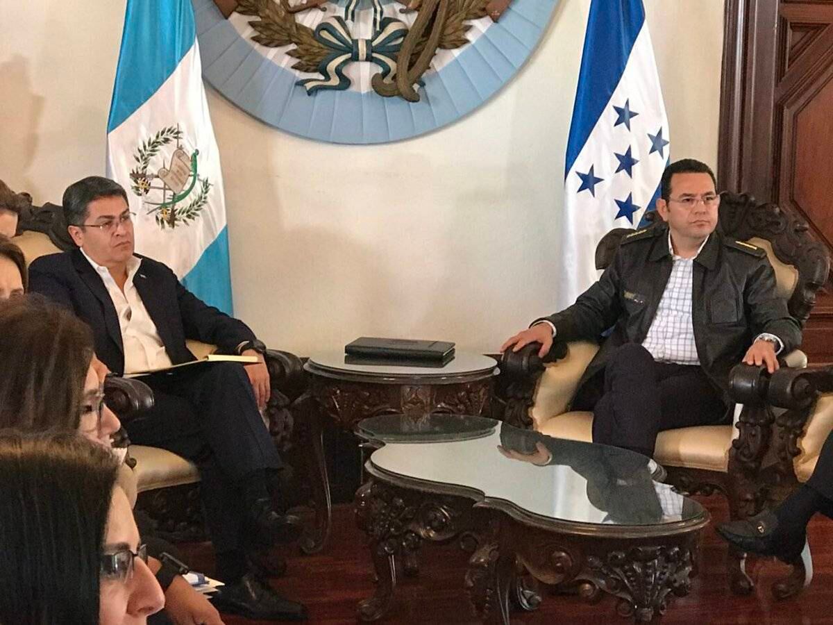 El presidente guatemalteco Jimmy Morales y el mandatario hondureño Juan Orlando Hernández se reunieron este sábado 20 de octubre en la Fuerza Aérea Guatemalteca (FAG).