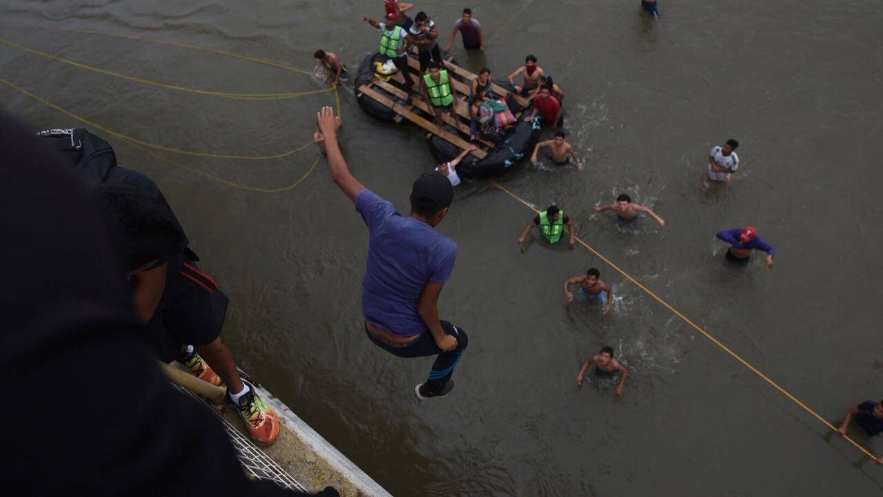 Otro grupo más reducido intentaba atravesar el mismo río. Antes habían entonado cánticos cristianos para levantar el ánimo.
