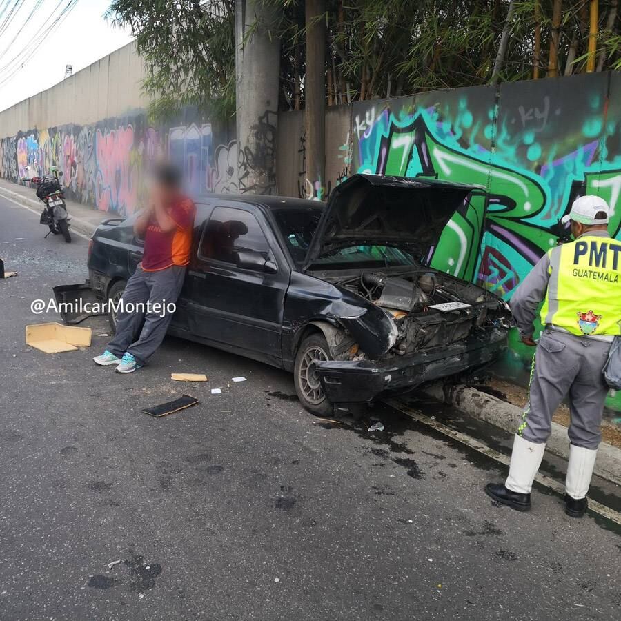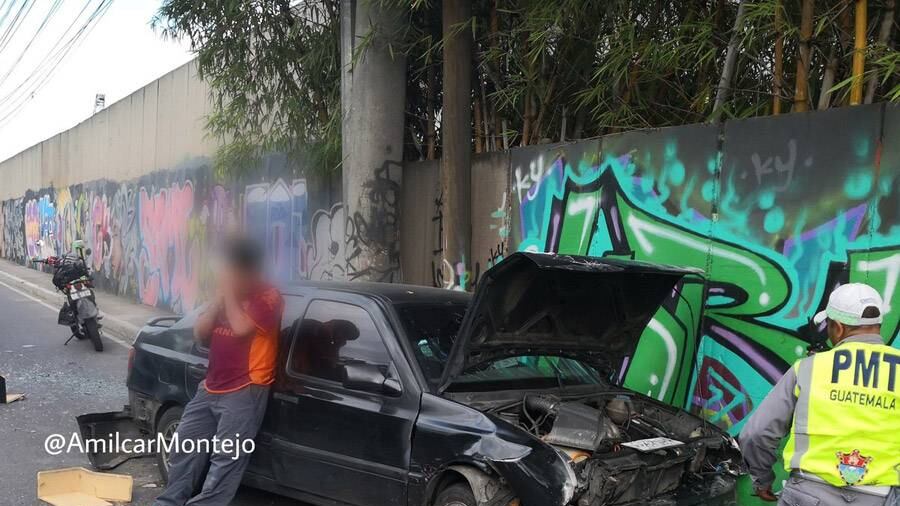 Un conductor estrelló su vehículo en contra de un paredón en la calzada Atanasio Tzul y 44 calle de la zona 12, según informó el intendente de la Policía Municipal de Tránsito (PMT), Amílcar Montejo.