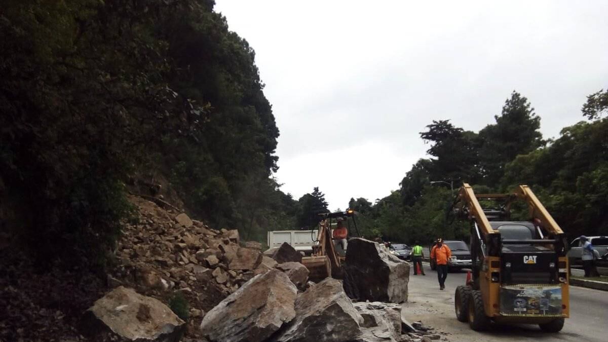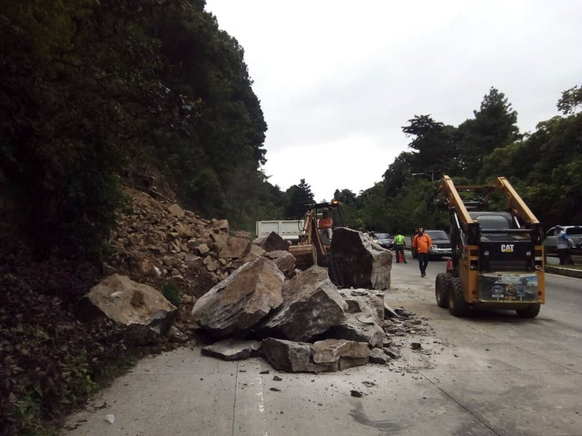 La lluvia sigue causando estragos. La Policía Municipal de Tránsito de Mixco tuvo que cerrar por algunas horas el paso vehicular a la altura de los kilómetros 23 y 24 de la ruta Interamericana por el desprendimiento de varias piedras en la carretera.