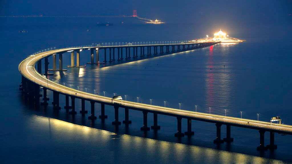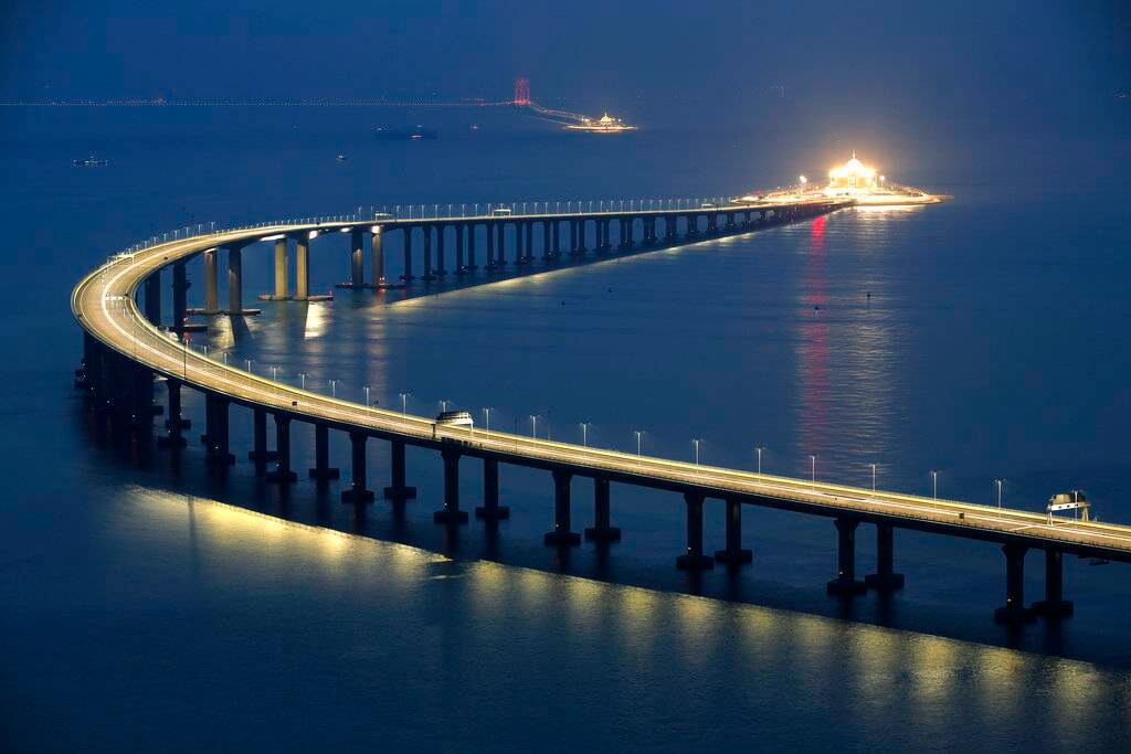 La estructura de 20 mil millones de dólares requirió casi una década para ser construida. Incluye un túnel bajo el mar que le permite a los barcos pasar a través del delta del río Perla, el corazón del crucial sector de manufactura chino.