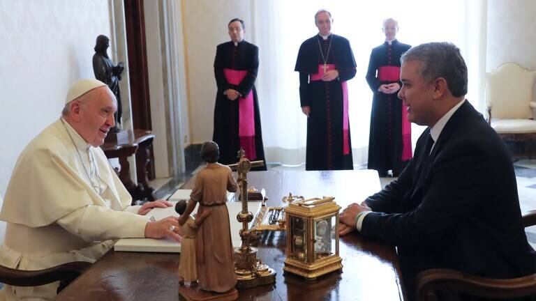 "Recibí una voz de respaldo de su santidad en el ejercicio que seguimos adelantando para que se pueda hacer una reincorporación efectiva de las personas que han dejado la violencia y que quieren iniciar un proceso de reconciliación del pueblo colombiano sobre los principios de verdad, justicia, reparación y no repetición", indicó Duque.