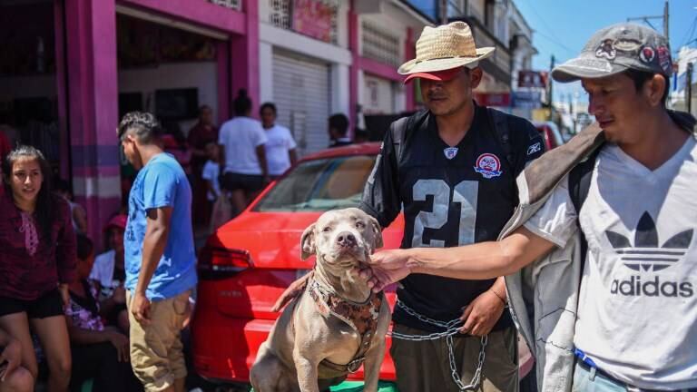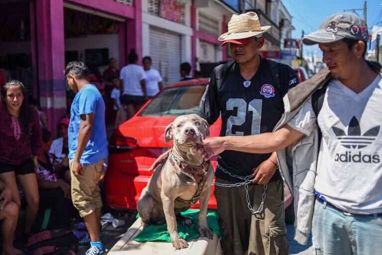 En Honduras se llamaba "La Fiera", alias "La Bestia", como se conoce al tren de carga que montan los indocumentados en México. Pero ahora, este Pitbull que viaja en la caravana de migrantes hondureños rumbo a Estados Unidos ha sido rebautizado como "Bolillo", un pan típico mexicano.