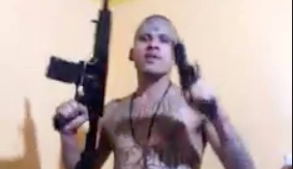 La publicación muestra el interior de una vivienda y a un hombre que viste un pants de color gris, no usa camisa y así enseña los tatuajes que lo identifican como integrante de la pandilla del Barrio 18.