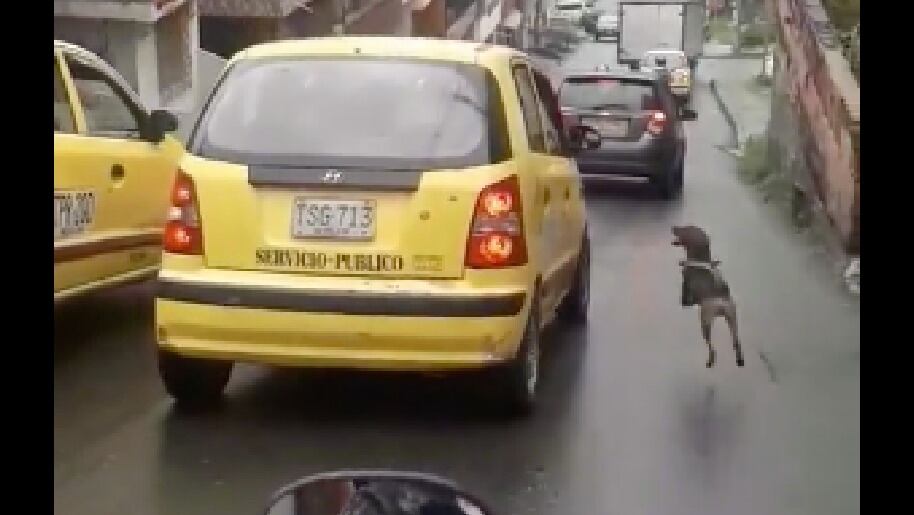 Según testigos que grabaron el hecho, una mujer abordo de un taxi había abandonado a su perro. El animalito se mostró desesperado por alcanzarla y corrió más de 20 cuadras atrás del vehículo.
