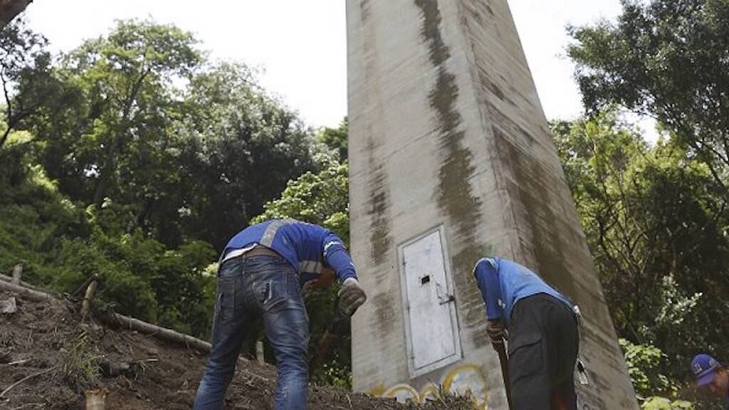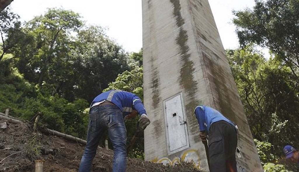 Trabajadores del Ministerio de Comunicaciones, Infraestructura y Vivienda (CIV) colocarán aisladores sísmicos a las bases del Puente Belice.