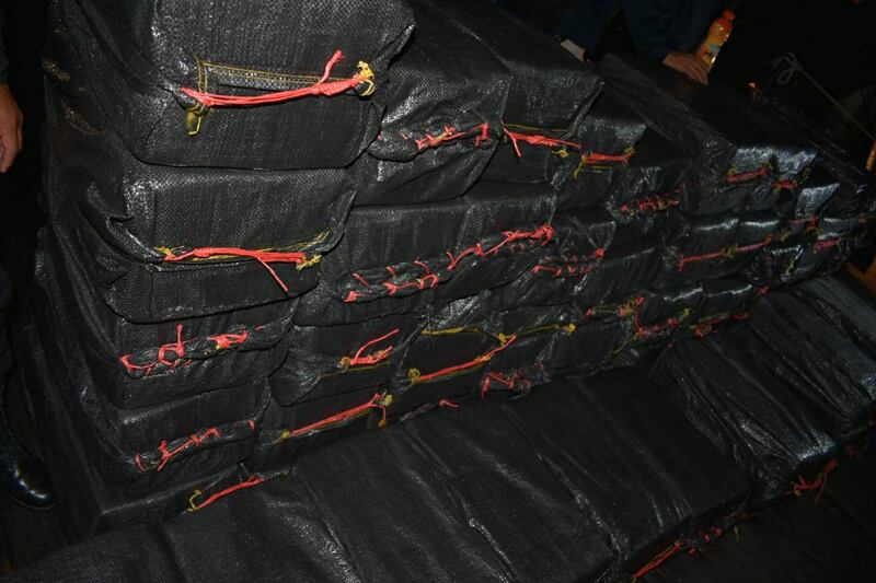 Luego de su arribo a la base de la marina nacional, los elementos militares procedieron a inspeccionar la embarcación en donde localizaron decenas de paquetes con posibles ilícitos.