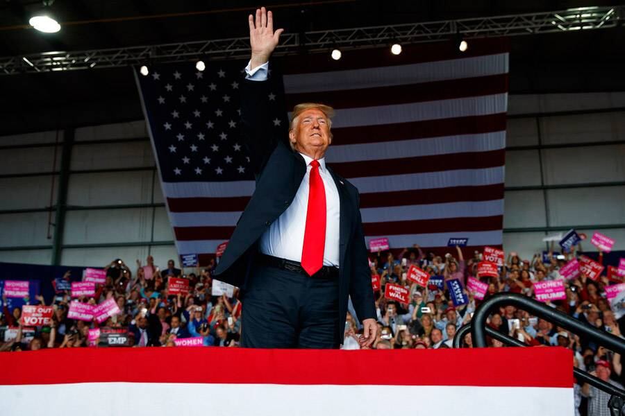 Frente a miles de personas que se presentaron a un hangar en Macon para respaldar al candidato republicano a la gubernatura de Georgia, Brian Kemp, Trump declaró: “Hay algo en el ambiente que no había visto desde 2016”.