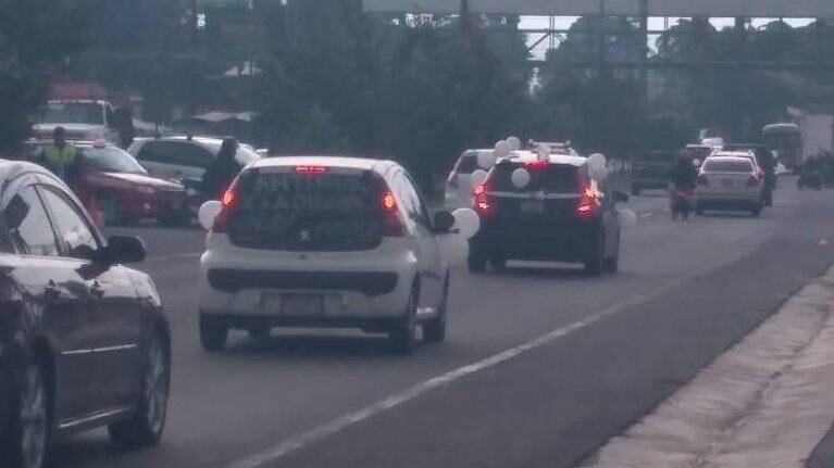 El grupo de automóviles genera tránsito lento en el área. Se dio a conocer que este se estaría enfilando por la calzada Roosevelt, aunque por el momento no se ha establecido con exactitud hacia qué punto se dirige.