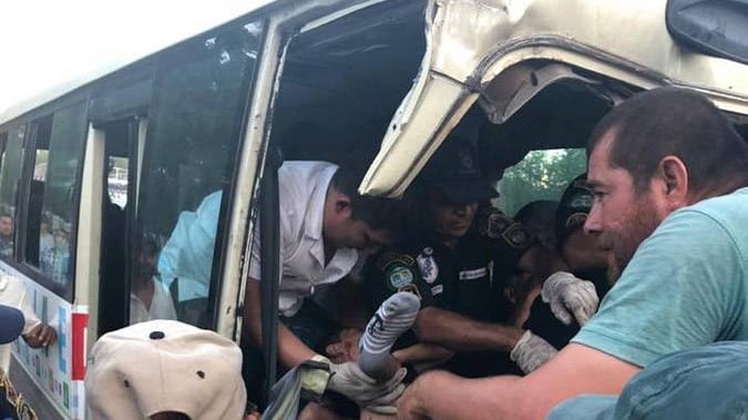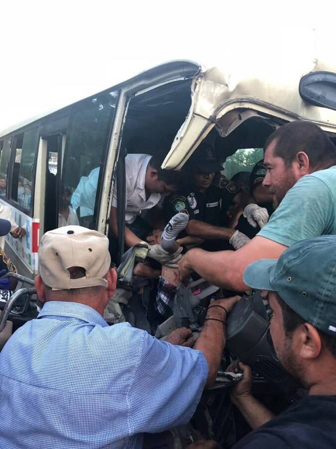 En el incidente vial se vieron involucrados un microbus y un camión que transportaba ganado, cuyo impacto tuvo tal intensidad que se tuvo que utilizar equipo especial, la quijada de la vida, para rescatar a dos personas.