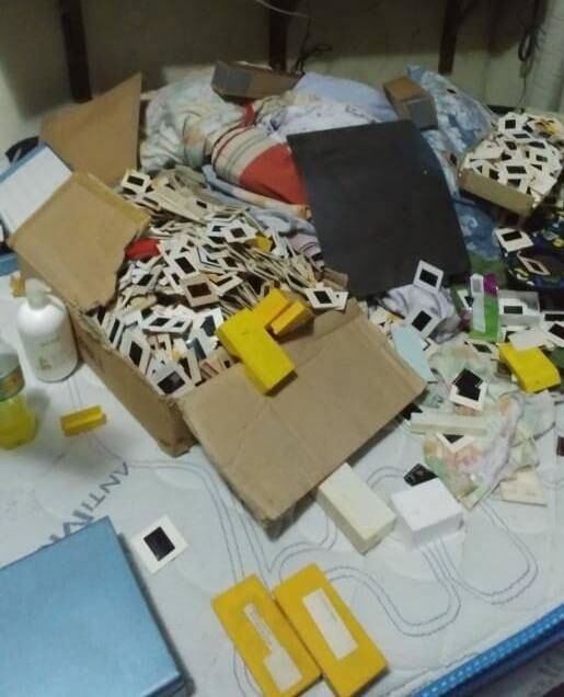 Además fueron secuestrados 70 slides o negativos que contienen imágenes de abuso sexual infantil, documentación abundante relacionada a la pedofilia, frascos que contienen lubricantes y un dildo.