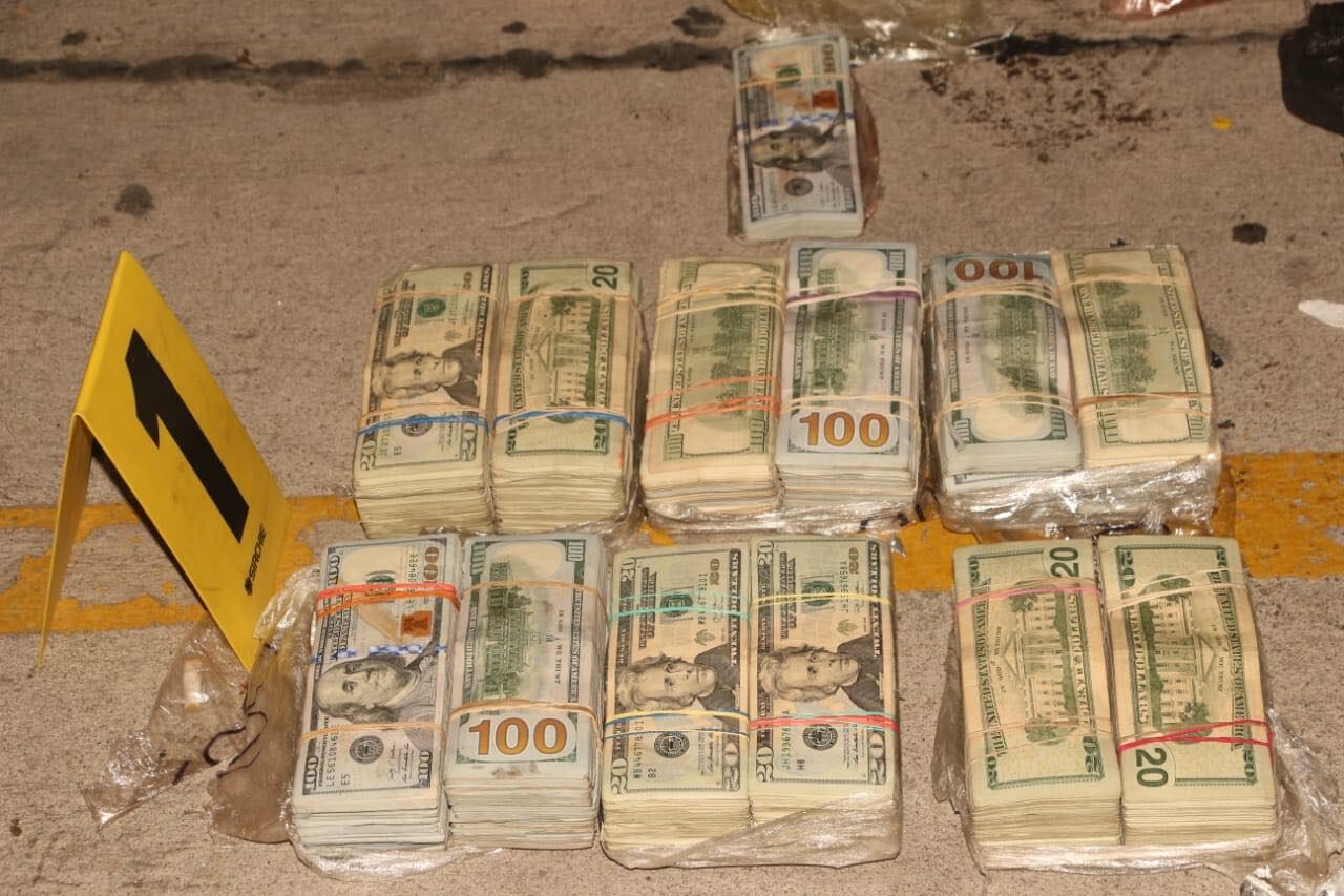 Según el reporte de la PNC, tras una inspección del vehículo por parte de la unidad canina fueron localizados 13 paquetes con dinero.