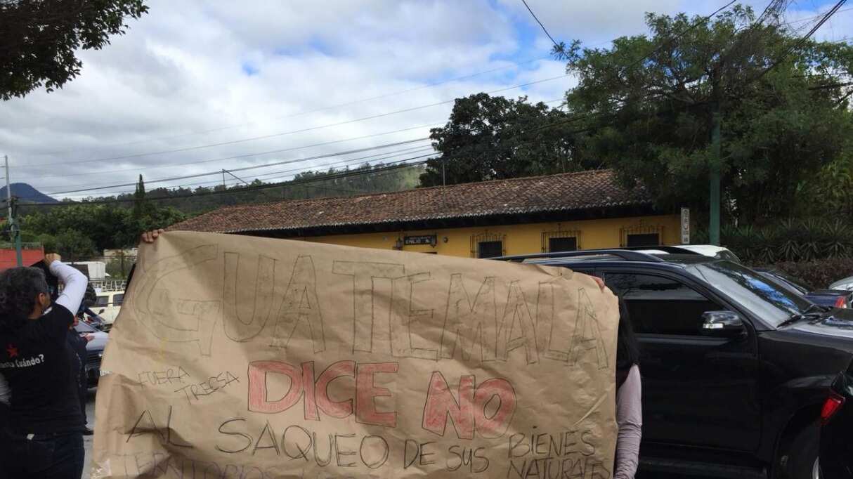 Un grupo de personas se ha ubicado en el ingreso de la ciudad colonial, en donde este jueves se desarrolla el XII Encuentro Empresarial Iberoamericano, para manifiestan su rechazo en contra del gobierno de Jimmy Morales y con mensajes en contra de algunos de los presidentes que asistirán a dicha cita.