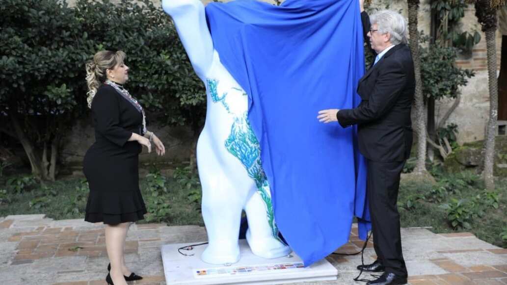 El embajador extraordinario de la República Federal de Alemania, Harald Klein, entregó a Guatemala una escultura de Buddy Bear como muestra de solidaridad y amistad con los países de Iberoamérica.