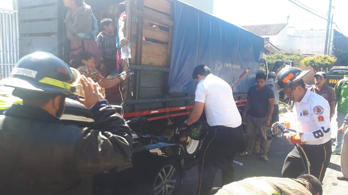 El incidente se registró en la 10a avenida y 32 calle de la colonia Las Charcas, en la zona 11. Para sacar a la víctima de entre los automotores se utilizó equipo hidráulico, informaron los socorristas del casco negro.